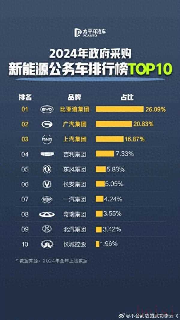 最新公務(wù)車采購(gòu)榜單出爐,比亞迪又拿第一。