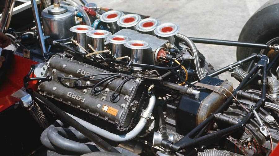 在眾多作品當(dāng)中,最著名的就要屬DFV(雙四氣門)引擎了。在這款引擎誕生之前,汽車的發(fā)動機(jī)都只有一進(jìn)一出兩個(gè)氣門,而對于引擎來說,只要吸入的空氣足夠多,那自然就可以產(chǎn)生出足夠強(qiáng)大的動力輸出。所以當(dāng)對進(jìn)氣量有要求時(shí),大家都會通過加大進(jìn)排氣門的口徑來實(shí)現(xiàn)。然而,單個(gè)氣門的口徑變大,會導(dǎo)致空氣流速變慢,從而降低發(fā)動機(jī)的進(jìn)氣效率。所以考斯沃斯決定,為引擎安裝2個(gè)進(jìn)氣門和2個(gè)排氣門,來解決單一氣門口徑過大的問題。