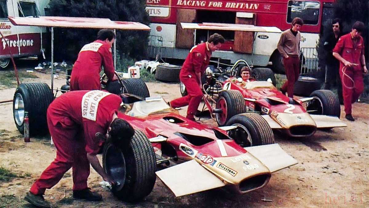 早在60年代初期,科林·查普曼就提前別人一步意識到了,圈速是可以靠減輕車身重量來提高的。于是他開創(chuàng)性地研發(fā)出了單體殼式的車身結(jié)構(gòu),并用來打造蓮花的F1賽車。待時(shí)間來到60年代末期,查普曼又發(fā)現(xiàn)了可以利用飛機(jī)機(jī)翼的原理,來增加空氣下壓力,從而提高車輛的過彎速度,于是賽車的前翼和尾翼便誕生了(如上圖)。