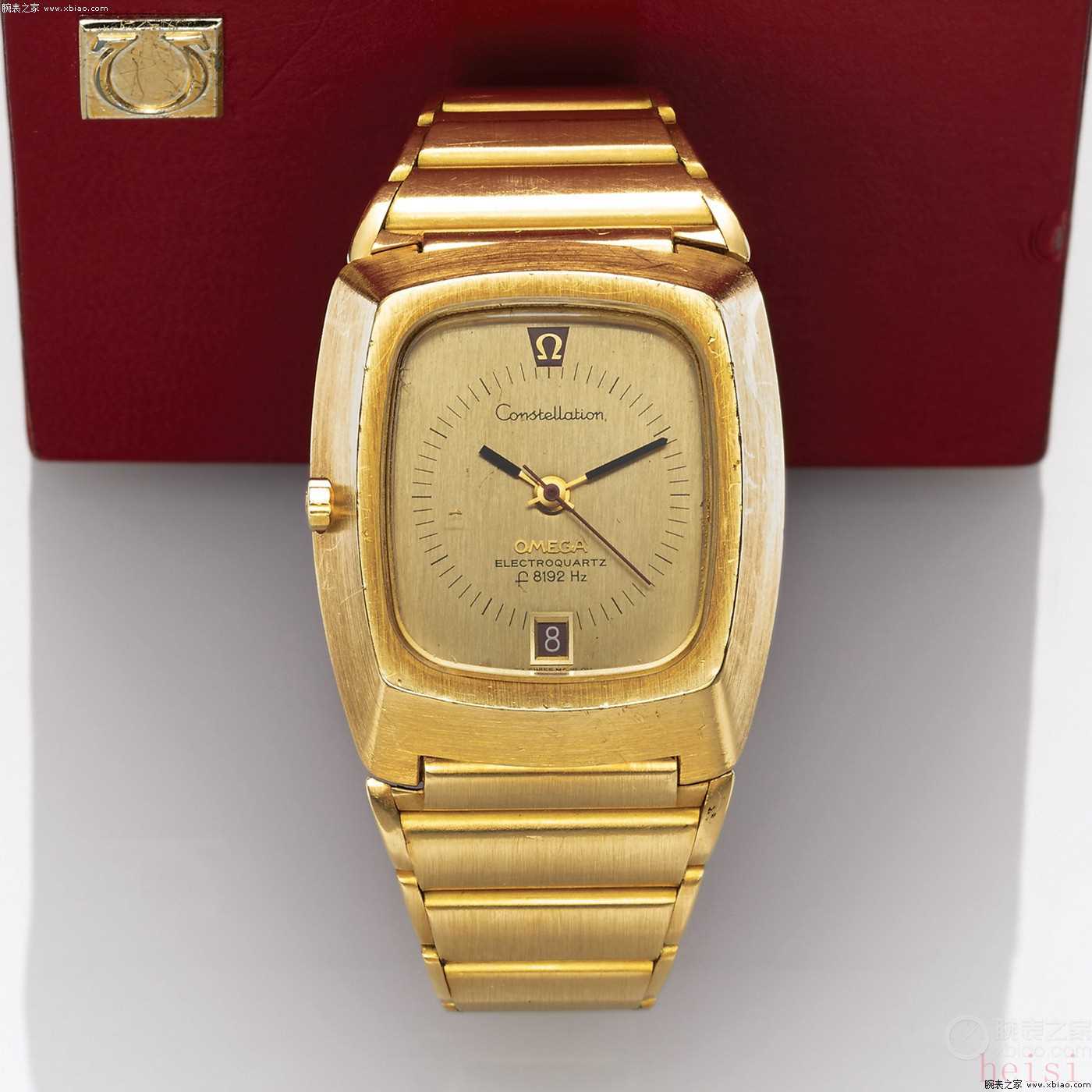 與許多品牌被石英的到來而摧毀不同,歐米茄選擇擁抱石英革命,并于1970年巴塞爾展覽會上推出三個(gè)搭載石英機(jī)芯的腕表系列,其中一款名為星座系列Electroquartz f8192 HZ Ref.196.005石英腕表。這款腕表以方圓形金質(zhì)表殼搭配實(shí)金表盤,售價(jià)高達(dá)5,400瑞郎,在當(dāng)時(shí)與一輛全新大眾汽車相當(dāng)。