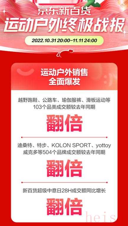 這是一個(gè)關(guān)于京東新百貨在11.11期間運(yùn)動(dòng)戶外品類戰(zhàn)報(bào)的關(guān)鍵信息點(diǎn)。