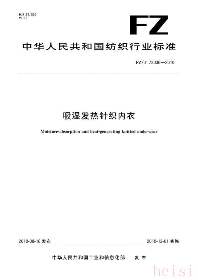 該項(xiàng)標(biāo)準(zhǔn)提出了兩項(xiàng)關(guān)于吸濕發(fā)熱性能的指標(biāo):