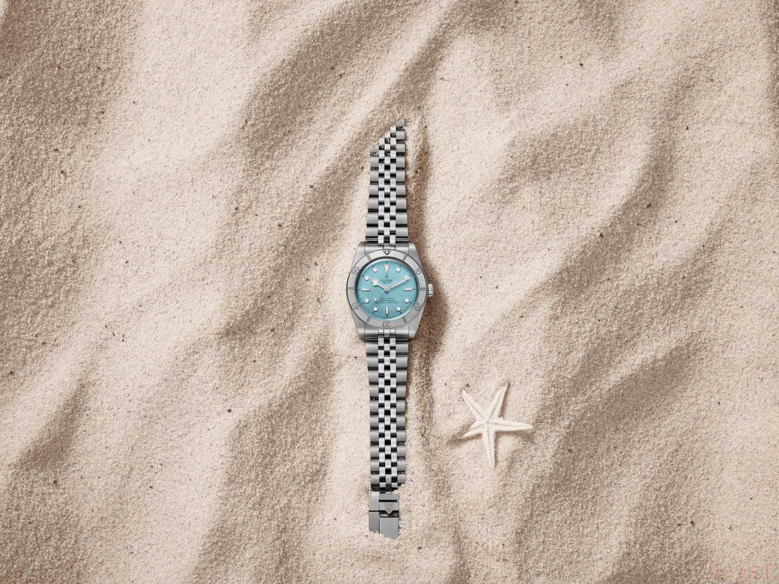 Tudor帝舵表推出全新碧灣54型“極境藍(lán)”款腕表(Black Bay 54 “Lagoon Blue”)。這枚腕表表盤尺寸為37毫米,搭載了磨砂質(zhì)感的“極境藍(lán)”表盤,配備鏡面磨光外圈,呼應(yīng)了陽(yáng)光明媚時(shí)蔚藍(lán)海浪拍打著沙灘的意境。