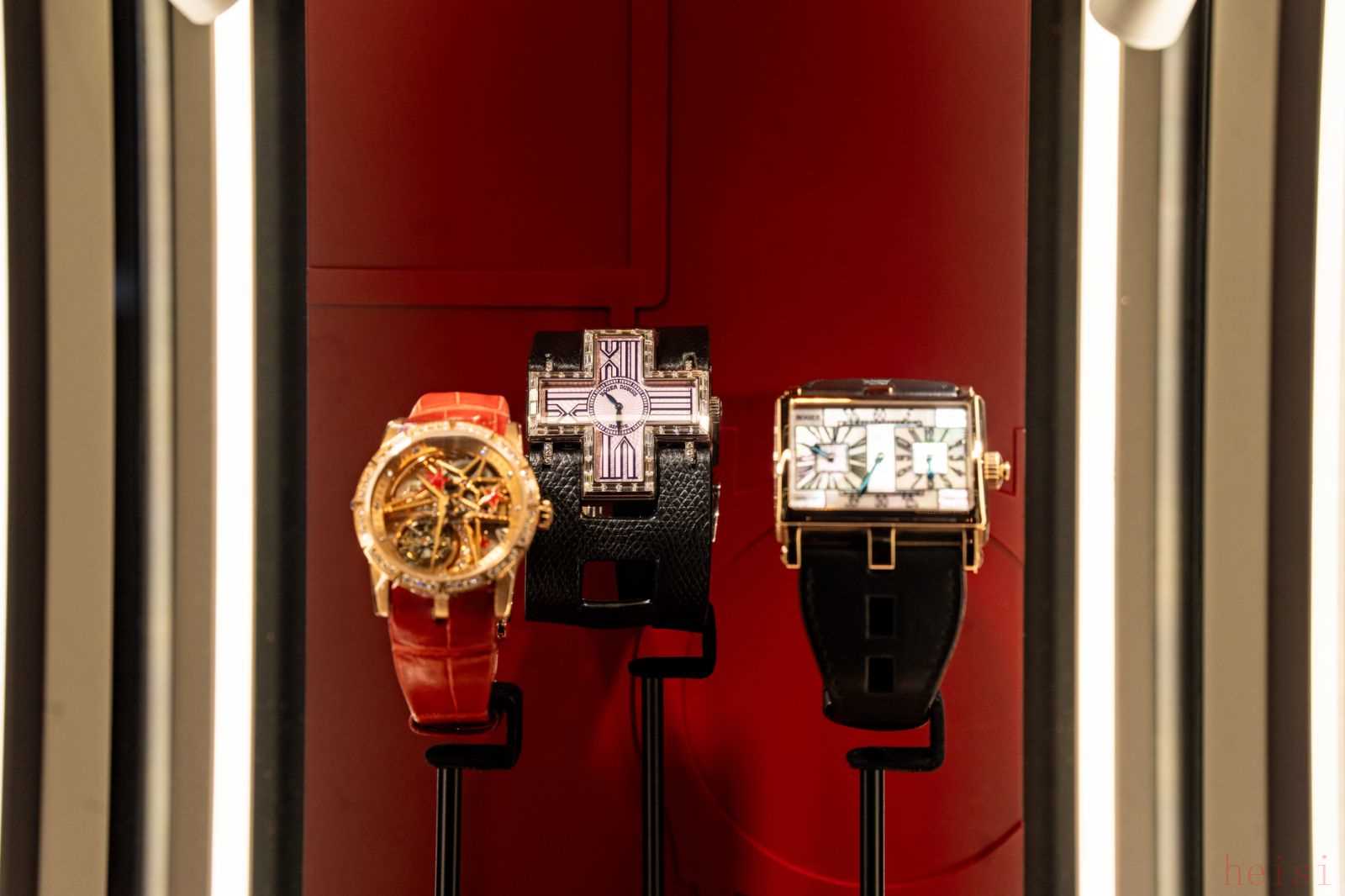 該羅杰杜彼展覽工作人員在現(xiàn)場(chǎng)告訴界面新聞,其中一些早期表款為客人私人定制,其中一些更是首次亮相中國(guó)市場(chǎng)。羅杰杜彼在展覽上也介紹了個(gè)性化定制服務(wù),包括特殊功能組合、表盤裝飾工藝、機(jī)芯構(gòu)造的定制化路徑等等。
