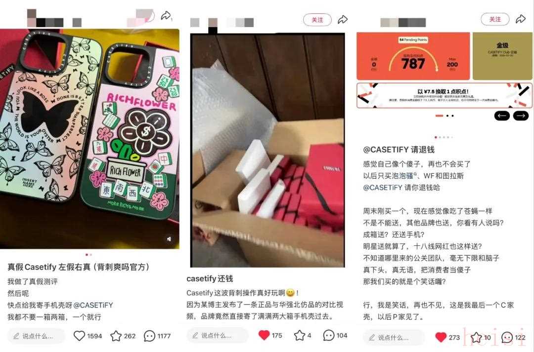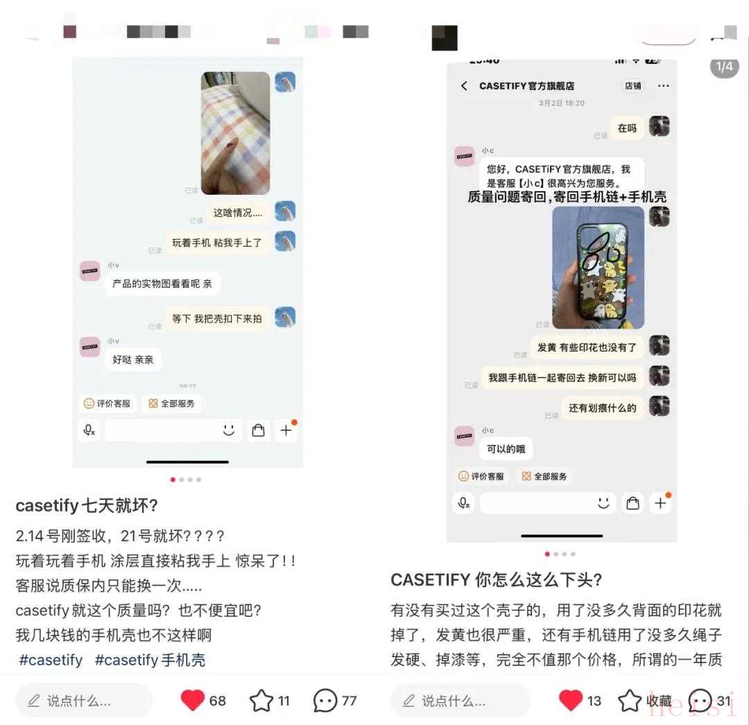 其中,“兩箱手機殼”事件尤為標志性,指的是有消費者曬出自己連續(xù)收到了兩箱手機殼,其中一箱是下單時購買的、符合描述的正品,另一箱卻是質(zhì)量堪憂的“滯銷品”。這一現(xiàn)象直觀地揭示了CASETiFY內(nèi)部品控混亂、正品與次品混發(fā)的嚴重問題。
