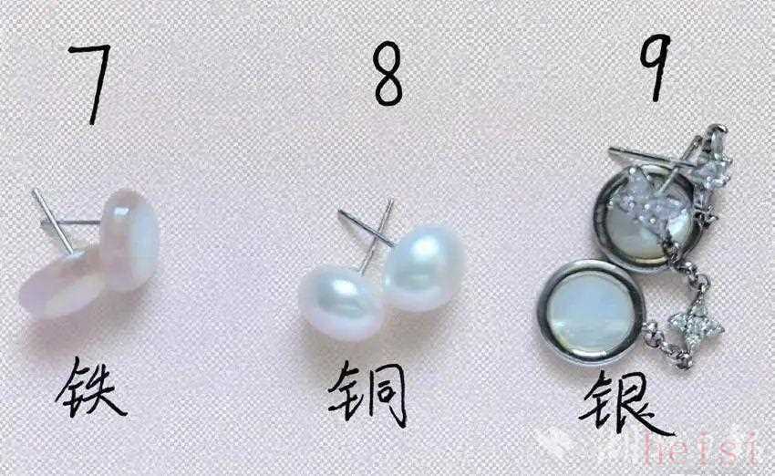 三款號稱925銀針的耳飾,一款為鐵,一款為銅,僅一款是銀。