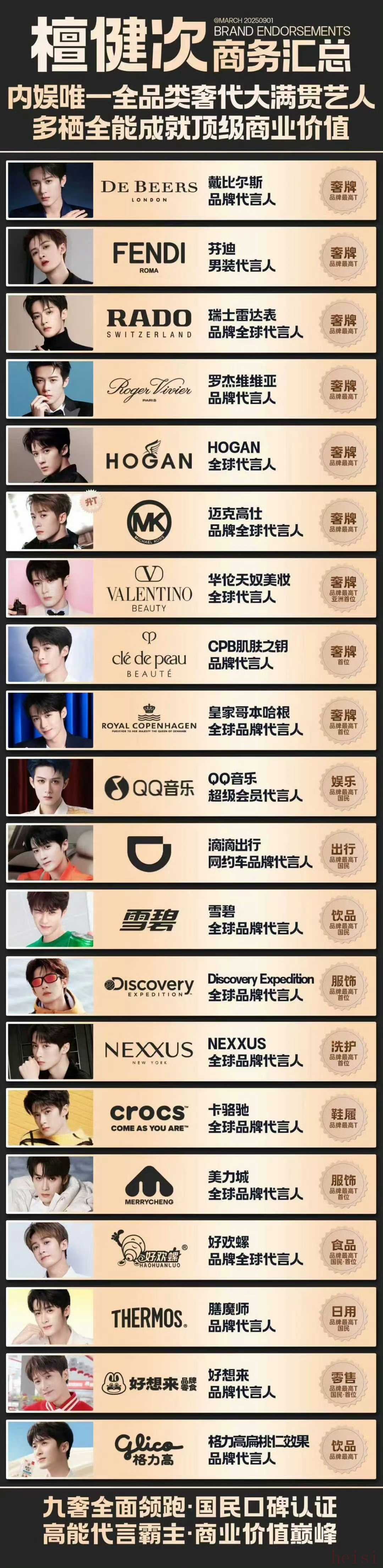 哪個明星能在短短幾個月內增加這么多奢牌和國民品牌,檀健次毋庸置疑的頂級商業(yè)價值!