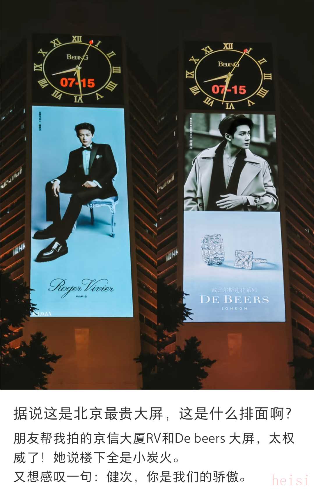 戴比爾斯對檀健次寵到什么程度呢?竟然和檀健次的另外一個奢牌RogerViviericon,同時段競相為檀健次投了北京京信大廈的地廣,這個地段百萬哦! ?