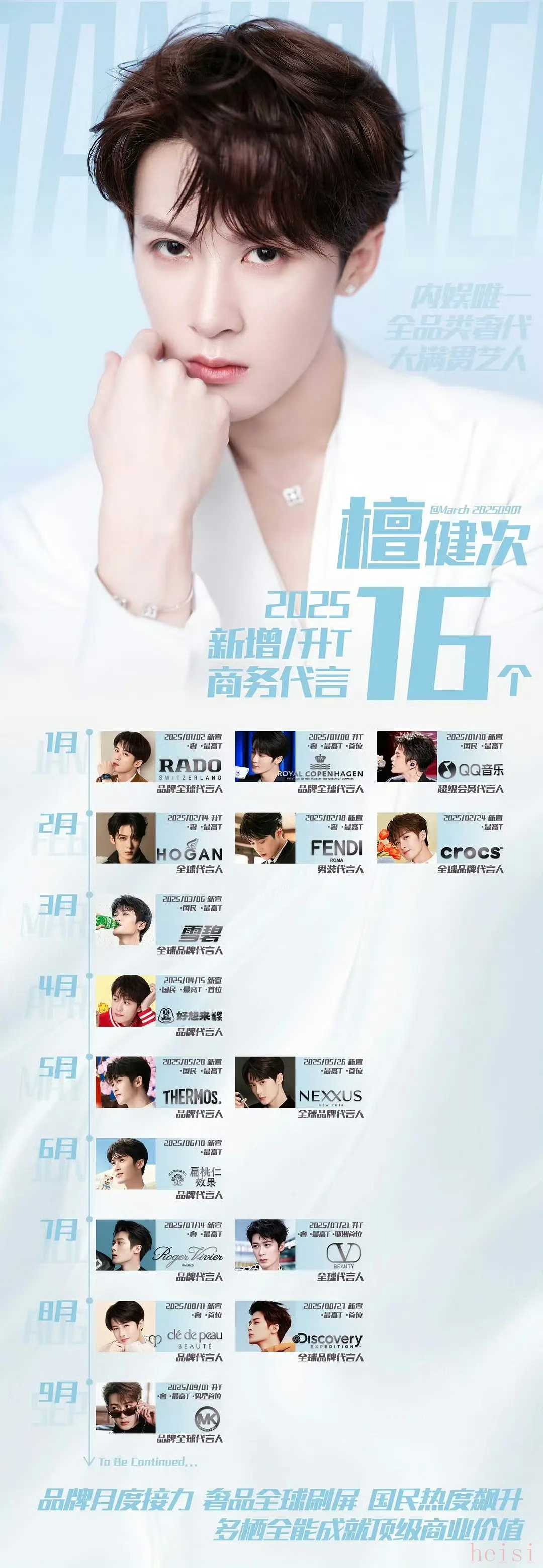 這幾個月檀健次家的鞭炮就沒停過啊,檀健次今年已經連續(xù)9個月宣新商務、商務升T了,商務的質量、數(shù)量都很高,商業(yè)價值一路飆升!