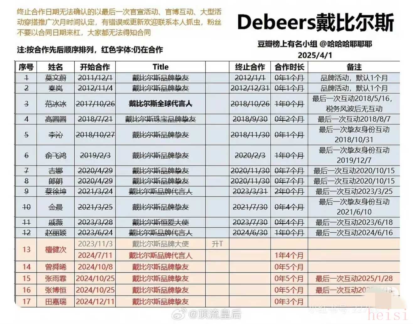 其實品牌給代言人升T是要考察很久的,特別是奢牌,比如戴比爾斯!