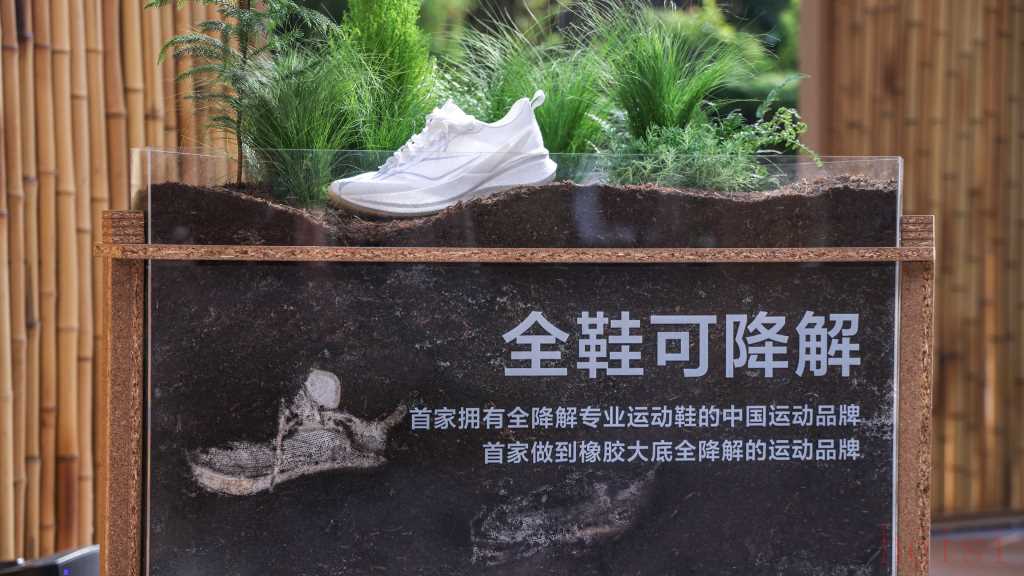 要知道,一雙運動鞋由超過30個“配件”組成,受制于結(jié)構(gòu)復(fù)雜性和功能性需求,全降解技術(shù)在運動鞋上的應(yīng)用始終是行業(yè)難點。在產(chǎn)學(xué)研資源聯(lián)動的支持下,李寧實現(xiàn)了全降解鞋的突破,其中橡膠大底的降解突破具有國際領(lǐng)先性,這也折射出中國運動品牌從技術(shù)跟隨到標(biāo)準(zhǔn)引領(lǐng)的躍遷。