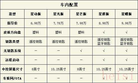 星辰的內(nèi)飾和外觀一樣,設(shè)計(jì)也比較簡(jiǎn)潔、素雅。其內(nèi)飾使用了數(shù)根橫貫的線條,勾勒出了極強(qiáng)的層次感,比較容易讓人接受。用料上,整體還是以軟性搪塑材質(zhì)和拉絲面板為主,與豪華感自然無緣,但屬于10萬內(nèi)SUV的主流水準(zhǔn)。