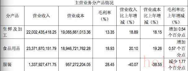 其中,在業(yè)務(wù)板塊中,生鮮及加工、食品用品的毛利率分別比上年度增長了0.54%、0.57%。