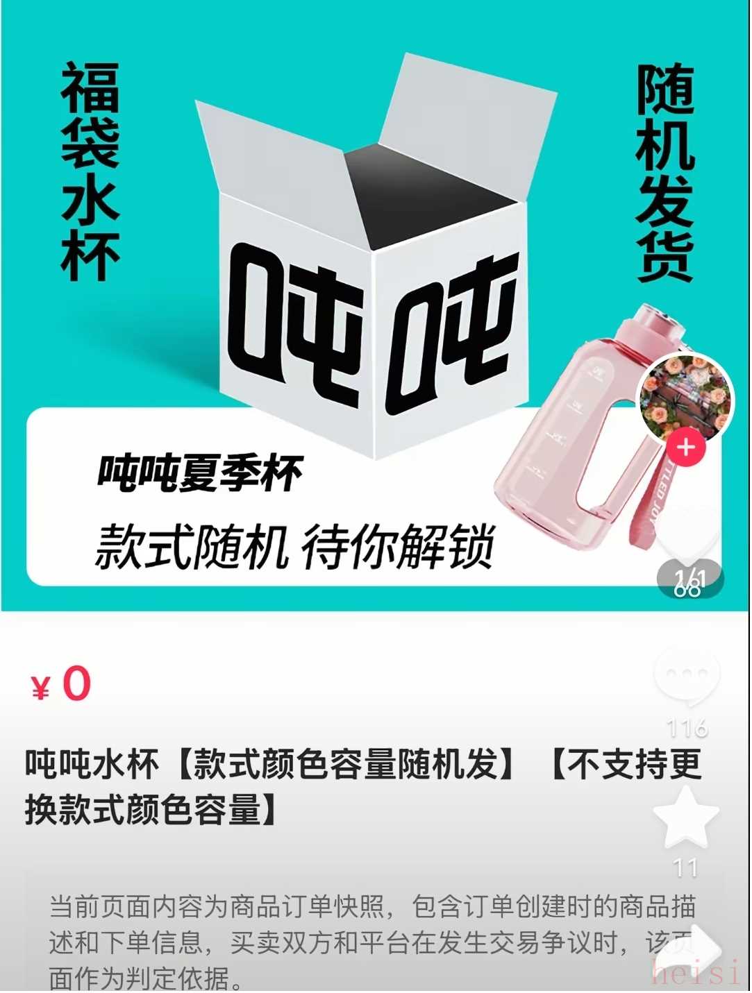 記者看到,在直播間頁(yè)面中,這款免費(fèi)抽取的“噸噸水杯福袋”僅標(biāo)注為“噸噸夏季杯,款式隨機(jī),待你解鎖”,并注明“隨機(jī)發(fā)貨,不支持更換款式顏色容量”,頁(yè)面中并未出明確說明不是為正品“噸噸”杯。