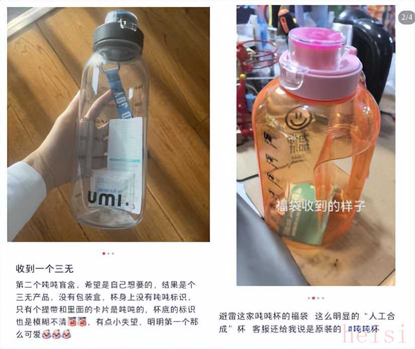 然而,這一回應(yīng)并未令消費(fèi)者信服。部分投訴者指出,所謂“隨機(jī)款式”在常規(guī)理解中應(yīng)是不同型號(hào)或不同配色的噸噸杯,而不是沒有任何標(biāo)識(shí)的“雜牌貨”?!凹热恍麄骱椭辈ラg都只強(qiáng)調(diào)了‘噸噸’,消費(fèi)者當(dāng)然會(huì)理解為噸噸正品?!币晃幌M(fèi)者質(zhì)疑道,“現(xiàn)在卻以‘同廠生產(chǎn)’來解釋雜牌問題,如果玩不起免費(fèi)抽獎(jiǎng),可以不做活動(dòng),但不能拿‘正品’做噱頭。”
