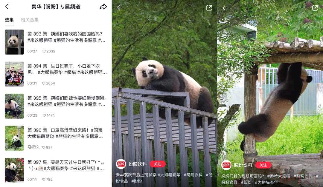 2021年5月,盼盼食品集團宣布終身認養(yǎng)大熊貓“秦華”,認養(yǎng)名為“盼盼”?!芭闻物嬃稀钡墓偬柨床坏疆a(chǎn)品內(nèi)容,反而活得像個熊貓博主,不僅日更大熊貓秦華的視頻,播放量、點贊數(shù)和粉絲互動量還都保持在比較高的水平,據(jù)了解,今年秦華還上過兩次抖音熱搜,#大熊貓秦華#話題的曝光量已高達1億次。