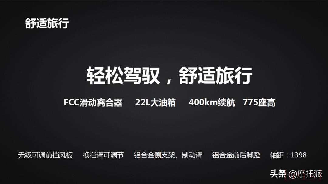 作為運(yùn)動(dòng)旅行車款,RG3更強(qiáng)調(diào)遠(yuǎn)行時(shí)的功能完備。它采用了22L大油箱設(shè)計(jì),其續(xù)航能力能夠輕松突破400km以上;它的的座高非常親民,只有775mm,對(duì)于多數(shù)騎士而言都是極為友善的;它的輪胎配置為前輪120/70-17、后輪160/60-17,更強(qiáng)調(diào)公路騎行的反饋及體驗(yàn),同時(shí),它的軸距為1398mm,能夠幫助騎士獲得更為迅捷的操控表現(xiàn)。