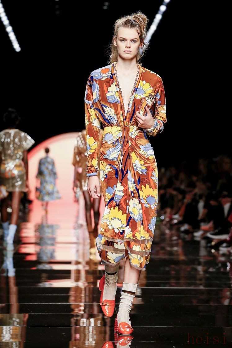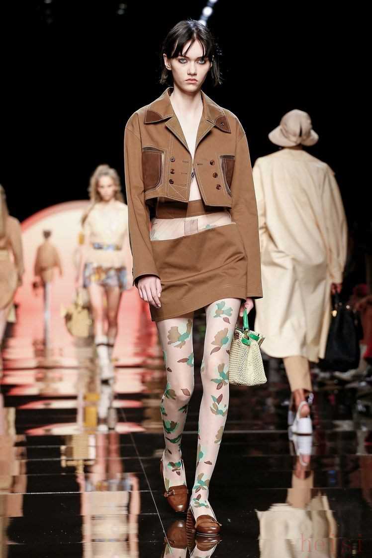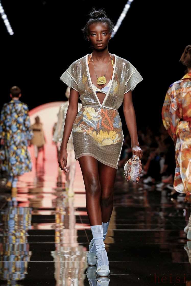 在日光閃耀的大秀主題下,F(xiàn)endi 2020春夏系列中的印花元素也沾染了陽光的高亮,以更加搶眼的色彩和恣意盛開的姿態(tài)在華服上搖曳,郁郁蔥蔥的綠、溫暖俏皮的姜黃、摩登優(yōu)雅的蜜糖棕等都簇?fù)碇@一份將要蓬勃而出的生命力,在熱鬧非凡的印花中透露著活潑的女性氣質(zhì)。