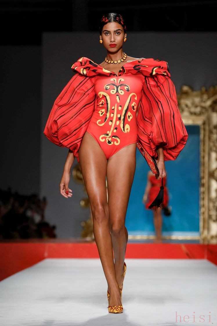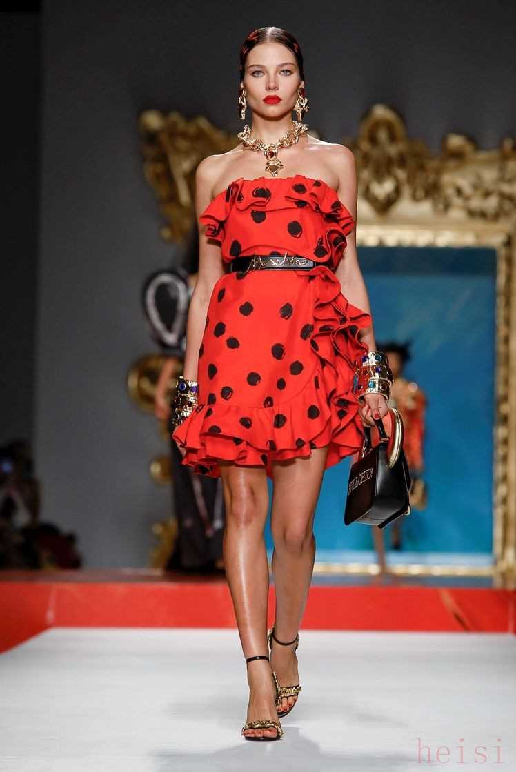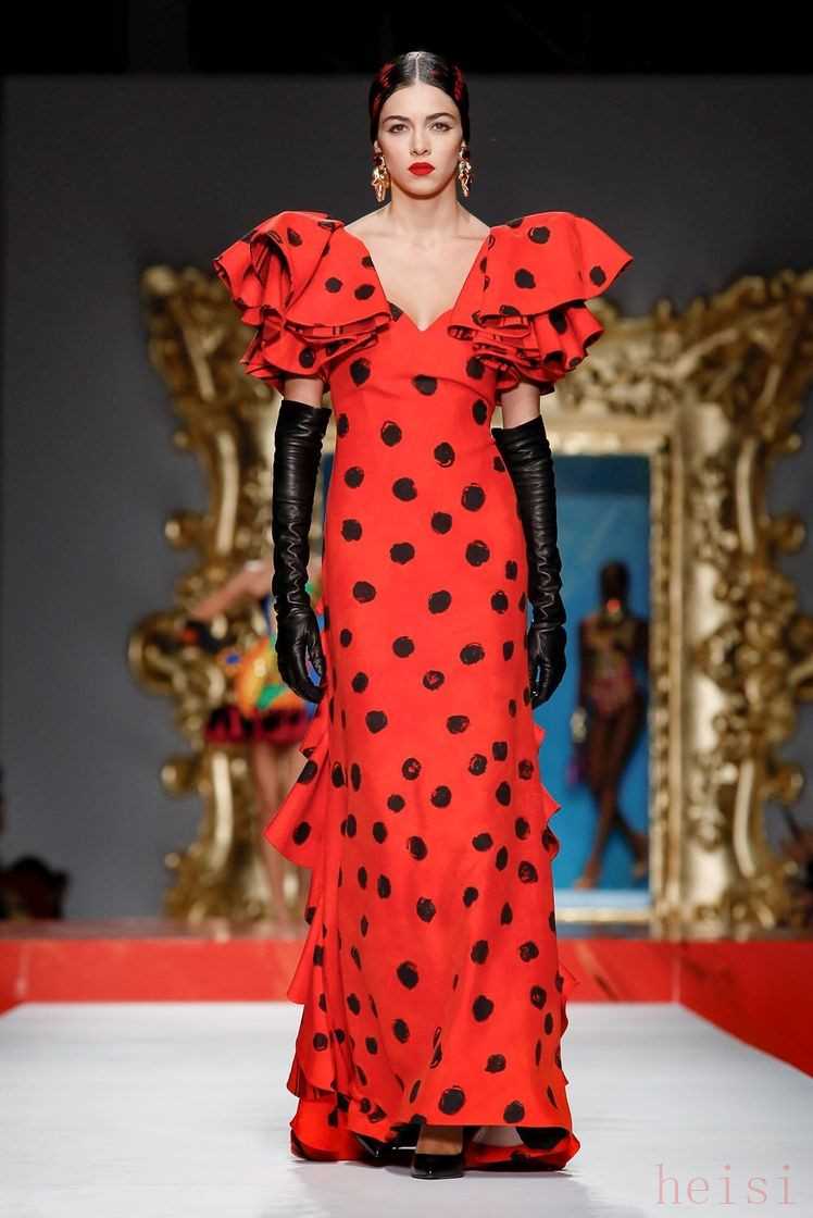 熾目的鮮紅色是角斗場上燃起公牛欲望的那一塊紅布,而身著斗牛舞裙的西班牙女郎們,熱情而奔放,在層疊的荷葉邊袖和性感的雞心領(lǐng)中將這份帶著攻擊性的致命誘惑盡情釋放。