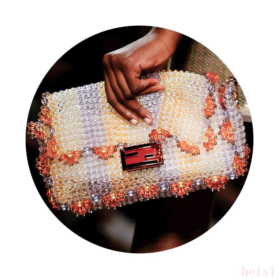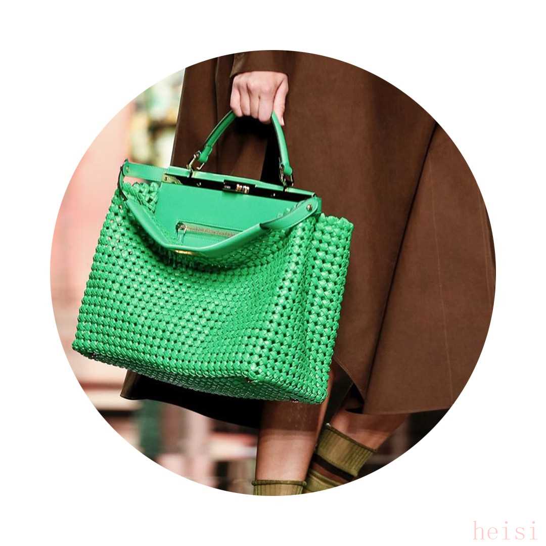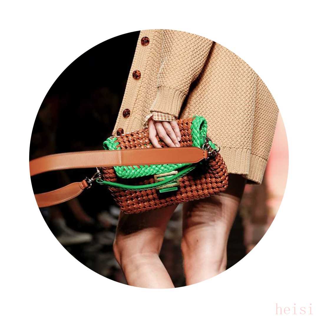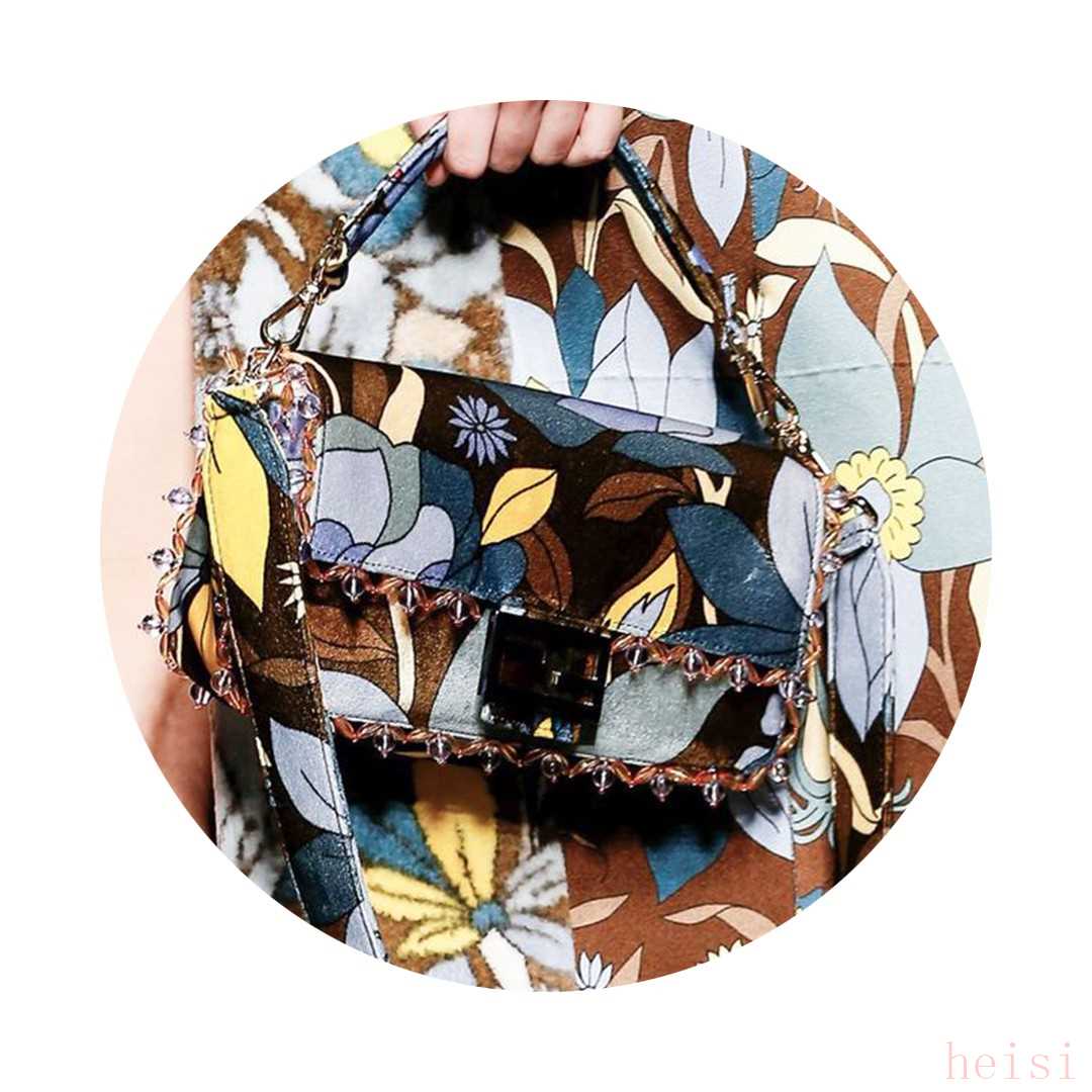 這一季,F(xiàn)endi的經(jīng)典Baguette手袋被打造成了更加自然的風(fēng)格,手袋鑲嵌的織物花朵、特殊的皮革編織工藝甚至是透明的串珠元素,搭配清新的配色更具春夏氣息。