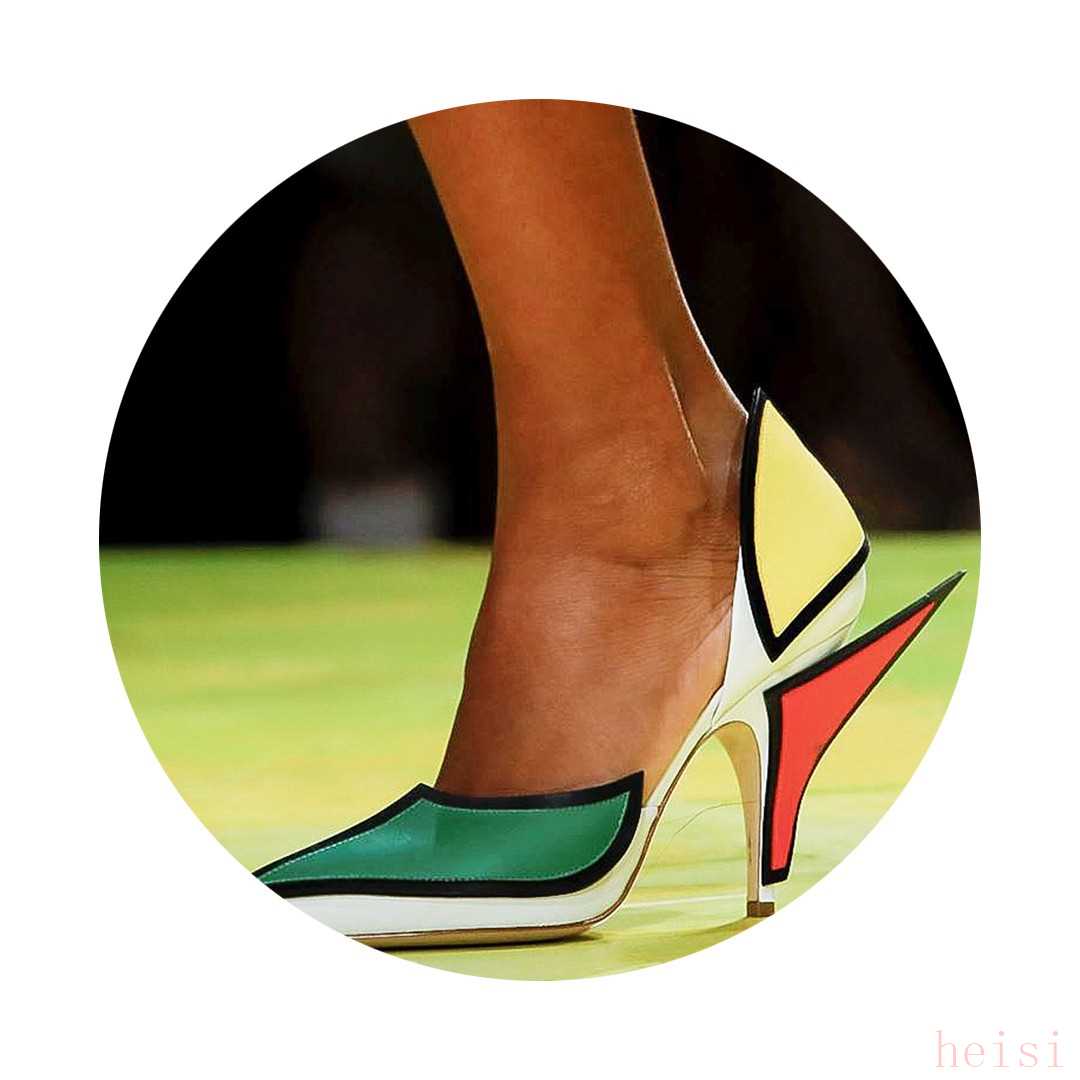 而這雙由紅、黃、綠三種色塊拼接的尖頭高跟鞋是本季鞋履中最為獨特的存在,有種蒙德里安的意味,又在凌厲的線條中將女性的摩登展現(xiàn)。