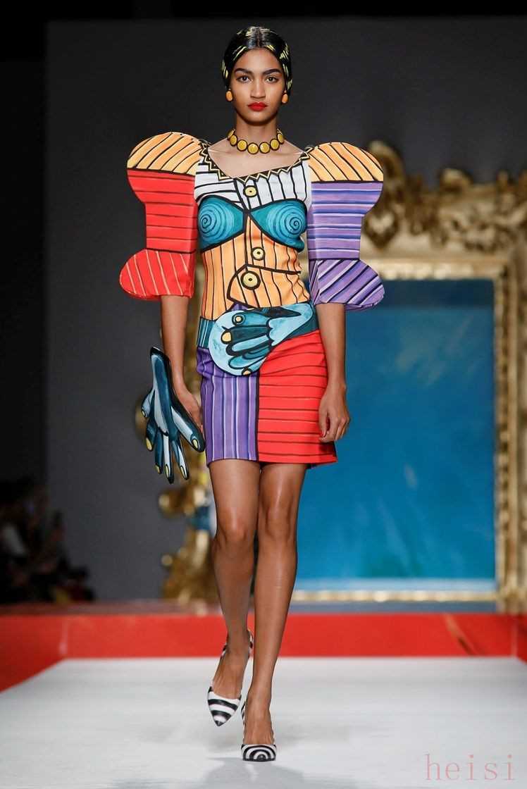 如果你對現(xiàn)下時尚圈冷靜、秩序的設(shè)計感到無聊,那么Moschino從不安常理出牌的天馬行空一定能夠激活你的腎上腺素。Moschino 2020年早春系列好萊塢萬圣節(jié)大亂斗還猶然在目,2020春夏系列又將畢加索抽象的畫作重新解構(gòu),這一次就連金屬畫框也沒放過。