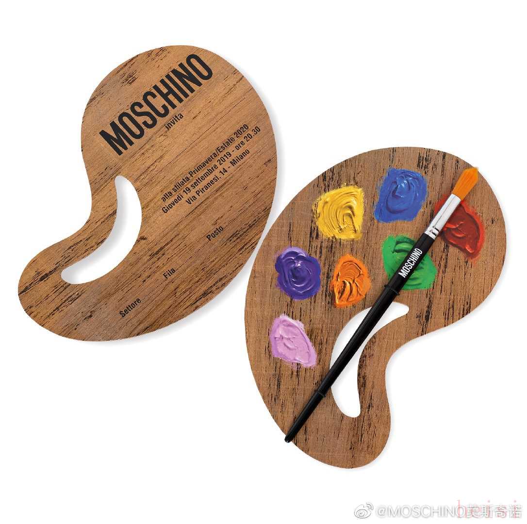 而秀前公開的函,也被做成了調(diào)色板的形狀,還逼真地將顏料抹上,而一根有l(wèi)ogo裝飾的畫筆更讓我們確信,Jeremy Scott這一次真的把創(chuàng)意之手伸向了那些經(jīng)典的畫作。