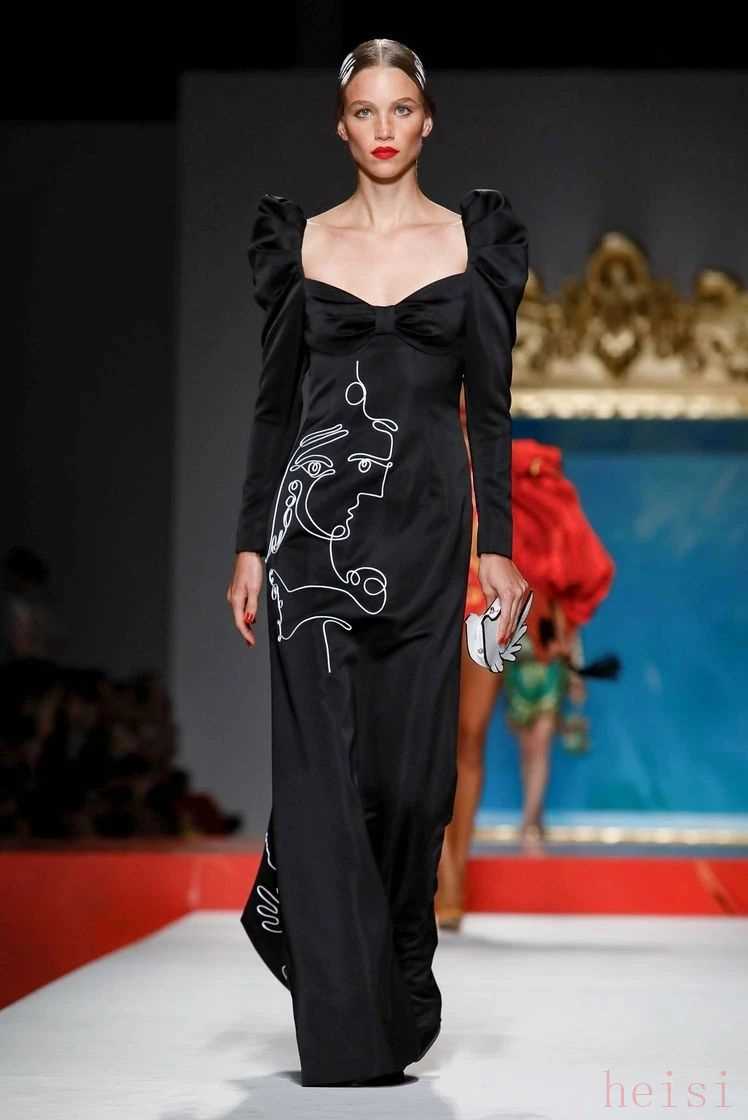 Moschino這一季真的是將巴勃羅·畢加索致敬地徹徹底底。畢加索立體主義時期擅長用不同角度的面部分割將立體的3D人體以二維的方式出現(xiàn)在畫布之上,而這條帶著畫框的女人圖像印花裙正是致敬了畢加索最愛畫的女性圖譜。