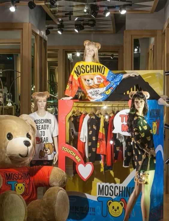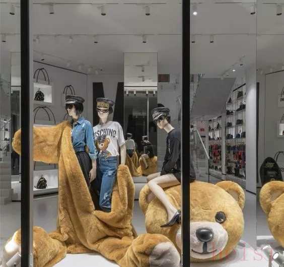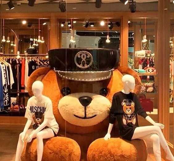 一說起Moschino還會聯(lián)想到的一個重要視覺形象就是小熊。一只小熊能被玩出多少種創(chuàng)意?看看品牌實體店的櫥窗就知道了。