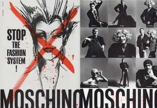1983年,F(xiàn)ranco Moschino創(chuàng)立同名品牌。Moschino大膽、前衛(wèi)不羈的設計風格出于其劍走偏鋒的鬼才設計理念。同年首次亮相米蘭時裝周,一件絲質晚禮服搭配厚底帆布鞋,手提購物袋的混搭、怪誕的組合風格在以優(yōu)雅、經(jīng)典、格調為主流審美的意大利時裝界殺出重圍。從此,Moschino一炮而紅。