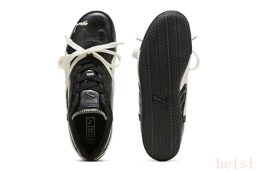 在這一波 PUMA Speedcat 的流行中,Rosé 扮演了重要推動(dòng)者的角色。近日消息,雙方將攜手帶來兩款聯(lián)名新品。一款保留了經(jīng)典 Speedcat 的外觀,以黑色為基調(diào),鞋身搭配白色的跑道標(biāo)識(shí),鞋舌有美洲獅 logo 加 Rosé 的名字,表明聯(lián)名身份。這一鞋款最特別之處在于鞋身四周加入了穿孔細(xì)節(jié),可以搭配鞋帶打造捆綁效果。