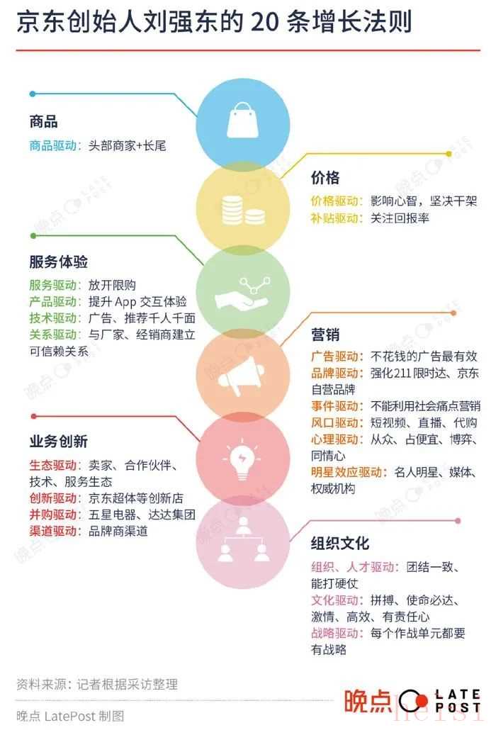 最后分享一張「20條增長(zhǎng)法則」。劉強(qiáng)東于6月底在北京總部召開的一場(chǎng) “東哥大講堂”,他將過去二十年來京東的增長(zhǎng)經(jīng)驗(yàn),總結(jié)歸納為20條增長(zhǎng)方式。