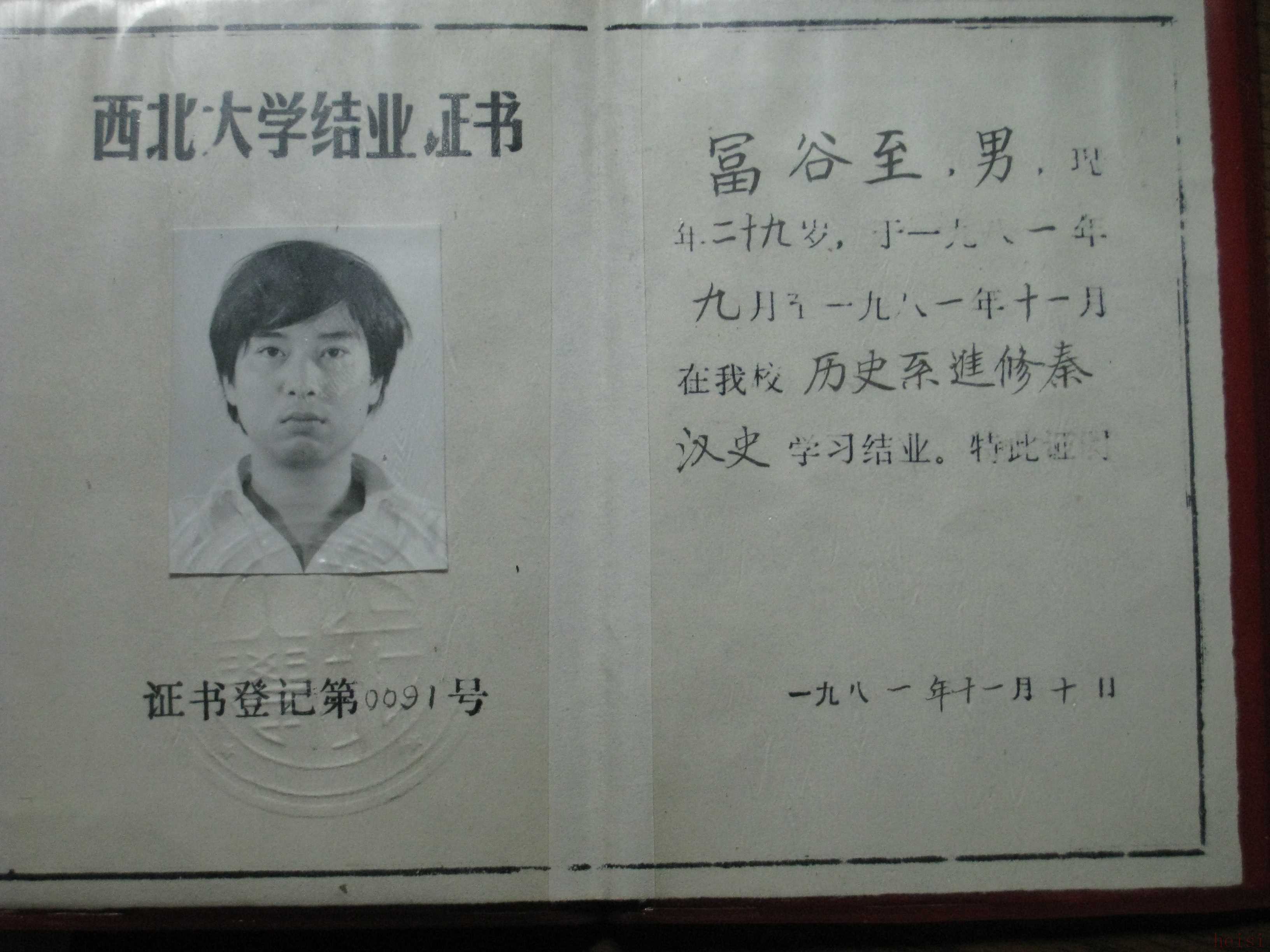冨谷至留學(xué)西北大學(xué)時獲得的結(jié)業(yè)證書