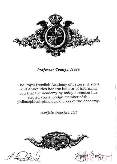冨谷至被遴選為瑞典皇家人文、歷史及考古學(xué)院外籍院士