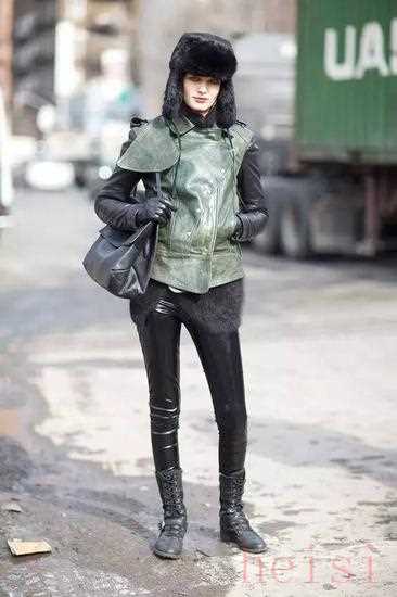 回到日常搭配,如果你覺得毛皮內(nèi)里又貴又不環(huán)保,如今亦有大把人造毛材質(zhì)的雷鋒帽可供選擇,帥氣干練的著裝與它十分相配。