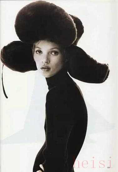 還記得前陣子范冰冰在中國版《Vogue》十一周年慶典上戴的那頂巨大的雷鋒帽嗎?Kate Moss 在美國版《Harper‘s Bazaar》1993 年 11 月刊上就已經(jīng)演繹過類似的款式了: