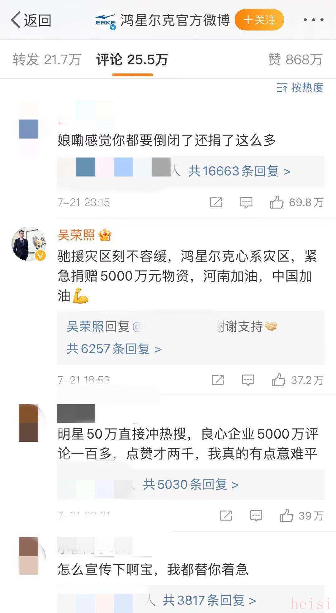 連微博會員都舍不得開的鴻星爾克,在企業(yè)這么困難的情況下,還捐出五千萬到河南災(zāi)區(qū),這樣的中國企業(yè)、民族企業(yè),作為華夏兒女的我們,一定支持!