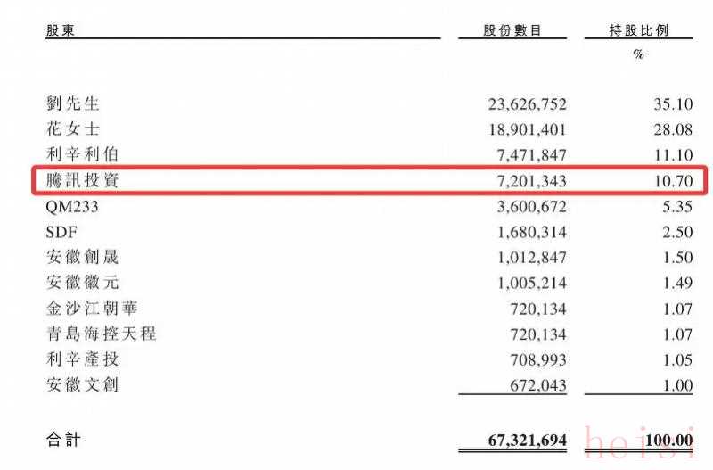 這表明騰訊公司(Tencent)是伯希和公司股東結(jié)構(gòu)中的重要參與者。