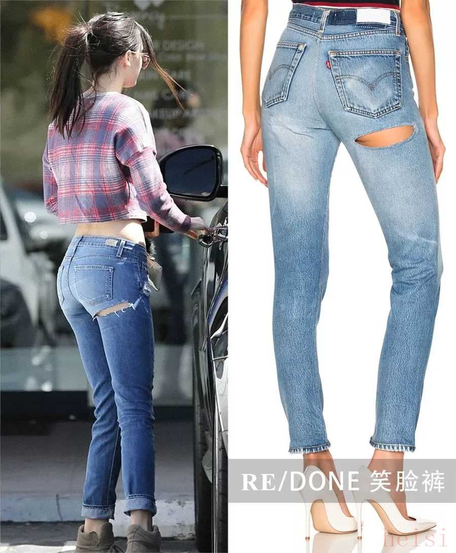 后來Kylie Jenner在網(wǎng)上PO了一條名叫“ butt rip ”的臀邊撕拉的牛仔褲,完美襯托臀部線條,這讓RE/DONE名聲大噪......