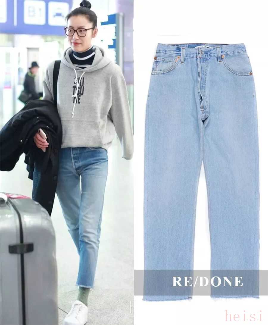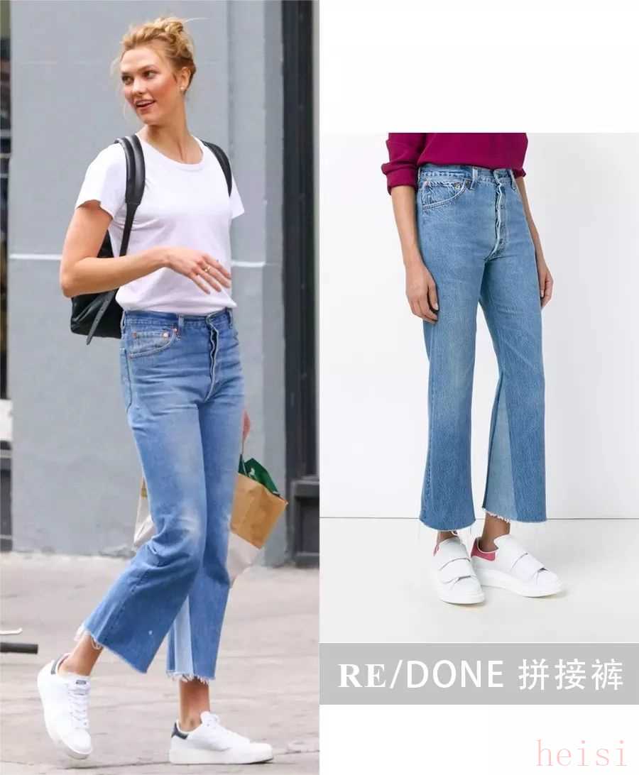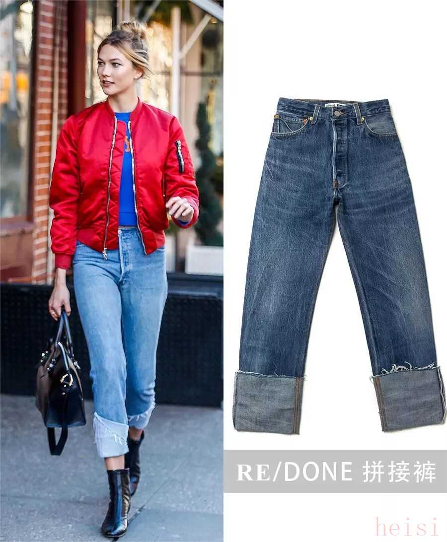 RE/DONE推出的這款牛仔褲,在去年甚至掀起了褲腳翻邊的新趨勢,著實考驗小腿的長度,看得出這款“吃定”了金小妹。