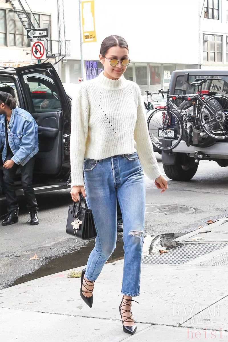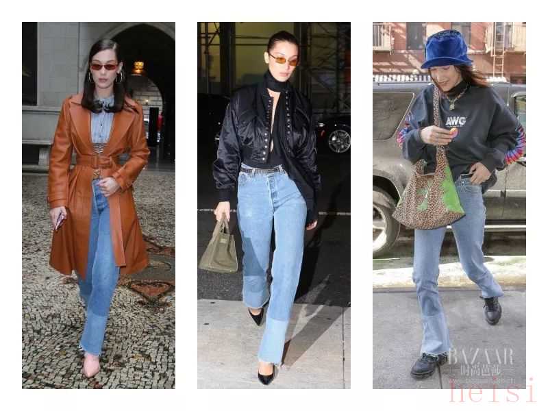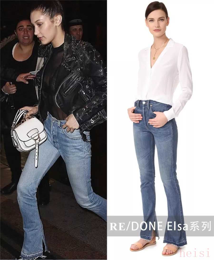 Bella對RE/DONE的熱衷不亞于Selena,穿到都快脫不下來,這兩年出街都是它家的牛仔褲,出鏡率不要太高。
