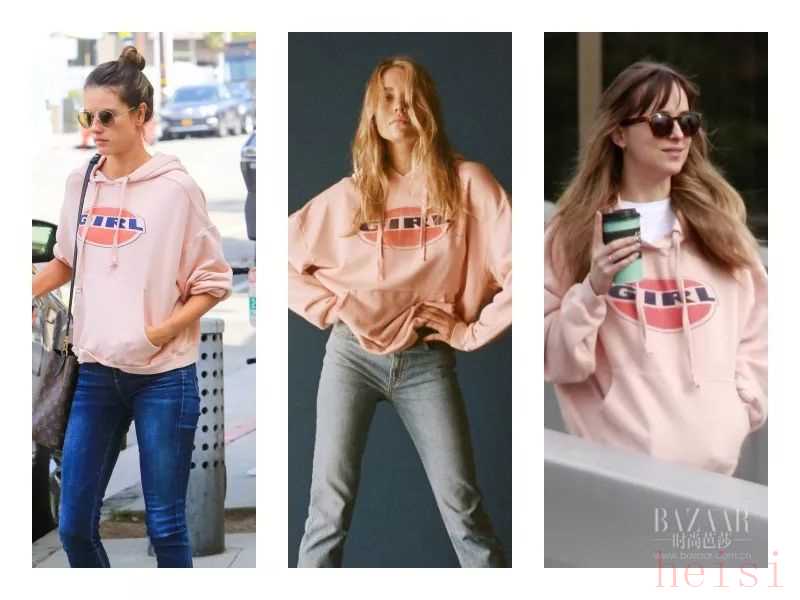 還有這件粉色的衛(wèi)衣,印著大大的字母Girl,八九十年代復古感十足。