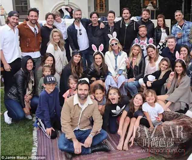 但今年復活節(jié)期間倆人仍然同時出現(xiàn)在家庭聚會上! Alessandra Ambrosio戴著兔耳朵身穿黑色皮衣,坐在Jamie Mazur右側(cè)后方,寶貝們擁在他身后
