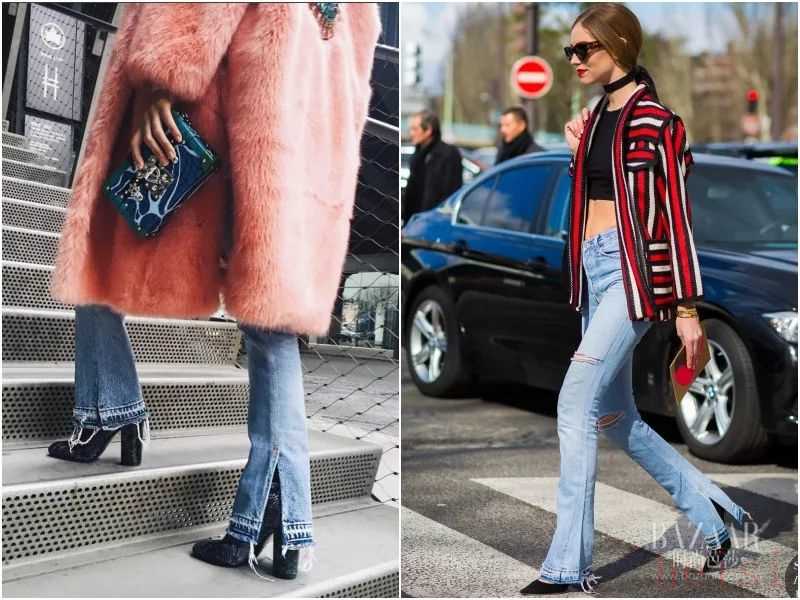 接下來芭姐要說的這款絕對是拉長腿的神器,及踝褲喇叭褲在褲腳開了個小衩,充滿了七十年代的嬉皮風。