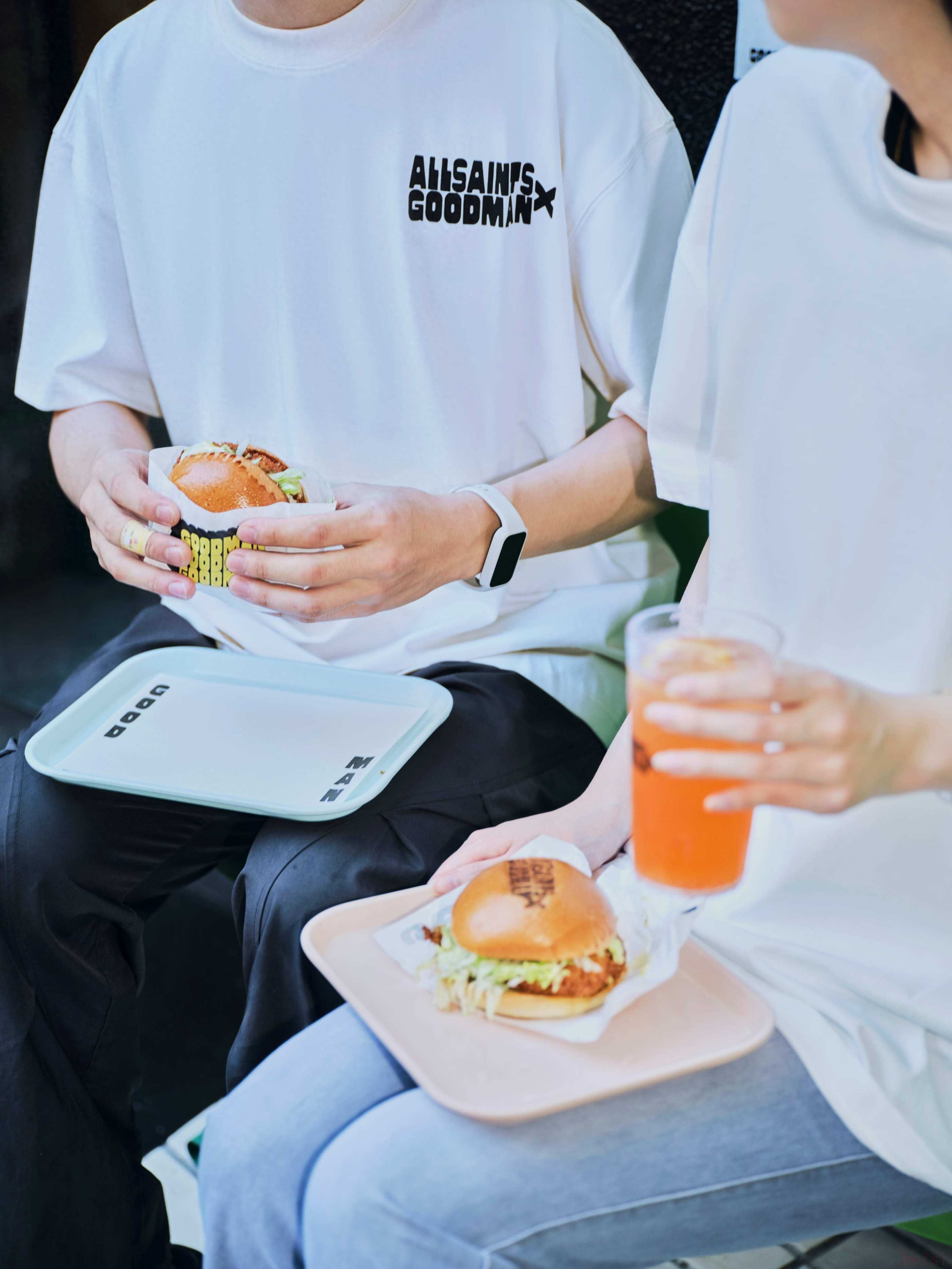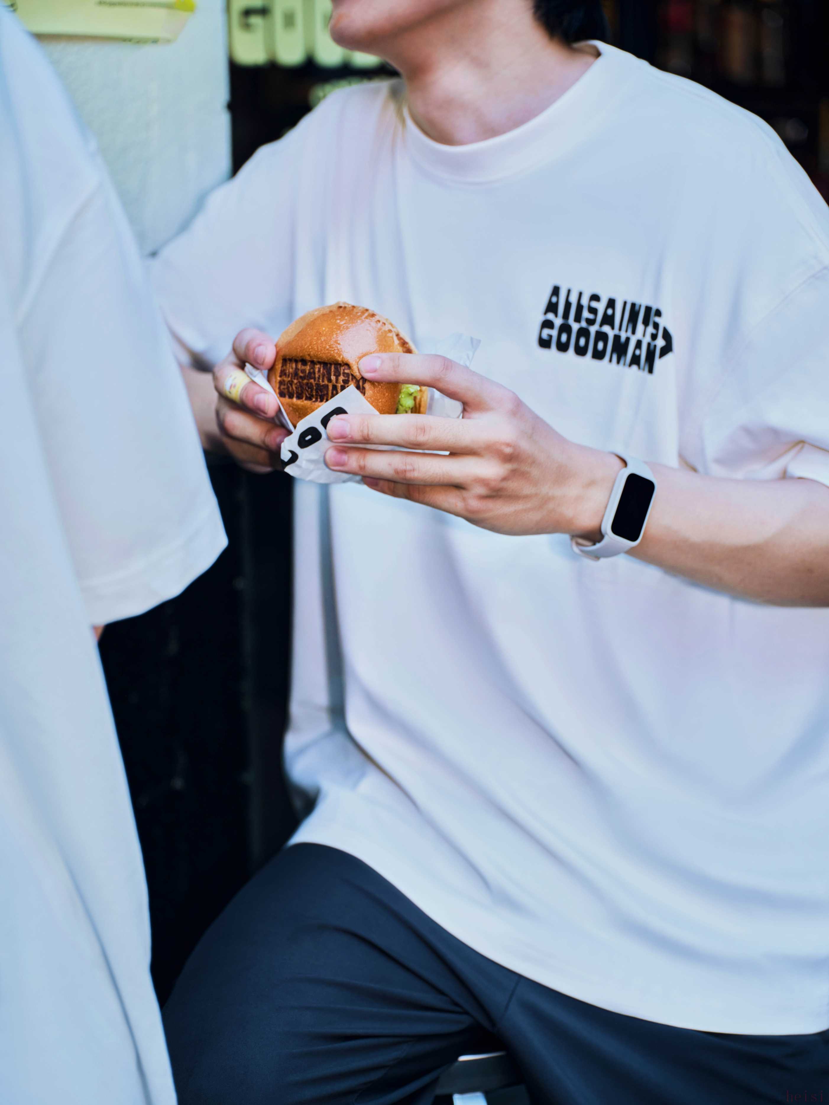 這件聯(lián)名T恤的誕生,源自兩個品牌對可持續(xù)發(fā)展的共同追求。ALLSAINTS從東倫敦的創(chuàng)意土壤中汲取靈感,將2025夏季系列"自由無界"的設(shè)計語言注入其中。采用100%全棉與再生面料制成的T恤,既延續(xù)了ALLSAINTS標(biāo)志性的英倫剪裁,又融入了GOODMAN標(biāo)志性的活力元素。當(dāng)穿著者在城市街頭漫步,或是參與海岸線環(huán)?;顒訒r,這件T恤都將成為守護海洋的時尚宣言。GOODMAN則帶來充滿煙火氣的城市溫度,并為本次活動特別推出“定制炸蝦漢堡”。活動當(dāng)日,該漢堡的銷售金額也將與T恤所得一并捐贈給藍絲帶海洋保護協(xié)會,讓美味與善意一同延續(xù)。