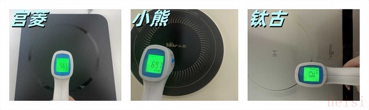 測評結(jié)果:從安全性能實(shí)測結(jié)果分析來看,宮菱的整體實(shí)力強(qiáng)悍,得到嚴(yán)格三國抗電磁干擾EMC認(rèn)證,宮菱是做到了把輻射量限制到國標(biāo)范圍內(nèi)的,他們家還采用了高導(dǎo)熱SPP黑晶材質(zhì)面板,耐磨度也是很靠譜,十分鐘小刀刮擦測試中面板上基本沒有劃痕,另外,宮菱分別搭載有核定DEER-SS快速動態(tài)補(bǔ)償、控溫陣列算法技術(shù)等黑科技,得到12項(xiàng)保護(hù)功能,功率穩(wěn)定,高低火力檔位來回切換,呈現(xiàn)出來的火力以及功率都是穩(wěn)定的。小熊在安全性能測試的過程中展現(xiàn)的實(shí)力一般,如果功率穩(wěn)定性可以深入優(yōu)化一下,用著能更充分降低發(fā)生起火,短路等安全事故的風(fēng)險,另外,該款產(chǎn)品的面板耐磨度也得通過調(diào)整材質(zhì)的方式進(jìn)行提升,十分鐘小刀刮擦測試期間,該款機(jī)型的面板上冒出來了不少劃痕。鈦古家的這個電磁爐得到了多家國內(nèi)機(jī)構(gòu)認(rèn)證,抗輻射能力實(shí)測表現(xiàn)不是太理想,我們在十分鐘小刀刮擦測試看到該款產(chǎn)品的面板上浮現(xiàn)出劃痕,但痕跡沒有說很深。測評維度③:散熱性能測試宮菱、鈦古、小熊電磁爐怎么樣?選電磁爐之前有一個關(guān)鍵的步驟就是理清產(chǎn)品具備的散熱性能情況,像電磁爐這樣一個運(yùn)行期間會釋放大量熱量的家電因?yàn)樯嵩O(shè)計調(diào)校不到位,用的時候是會引發(fā)漏電,短路等安全事故的,下面就帶各位來詳細(xì)了解三臺電磁爐的具體散熱性能實(shí)測表現(xiàn)。