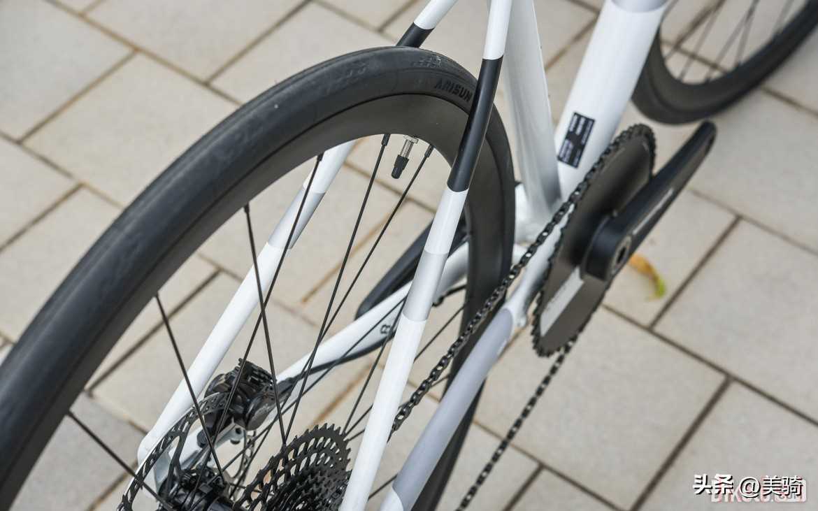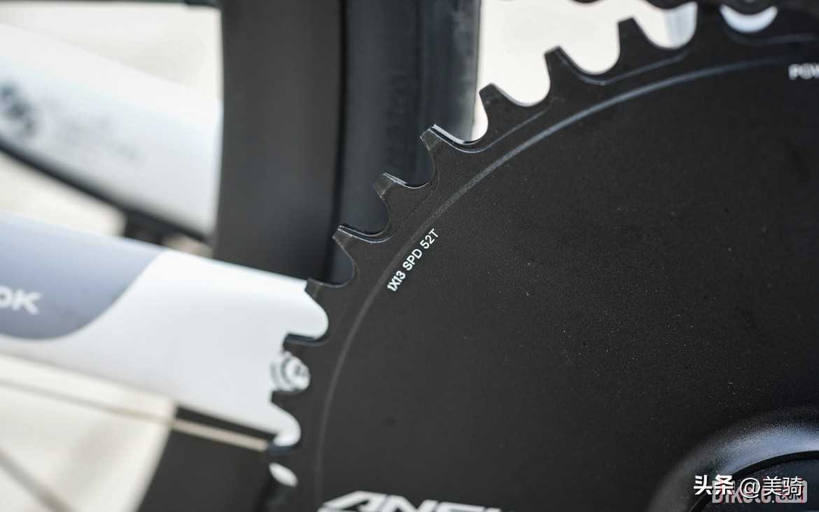 氣動盤片使用了正負(fù)齒形來增加鏈條穩(wěn)定性,防止掉鏈。全尺寸車型標(biāo)配52T盤片,作為一輛單盤車來說,還是挺大的。反正比小編我自己的單盤公路車要大……
