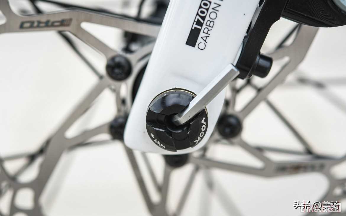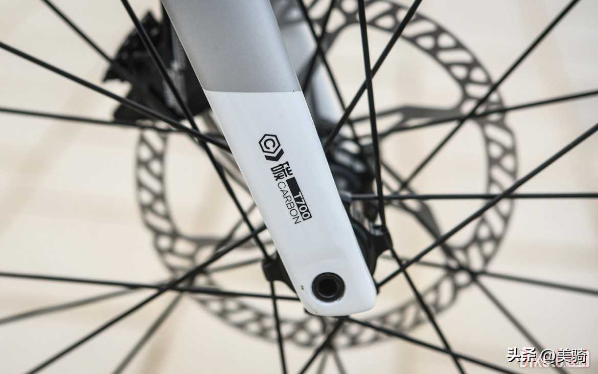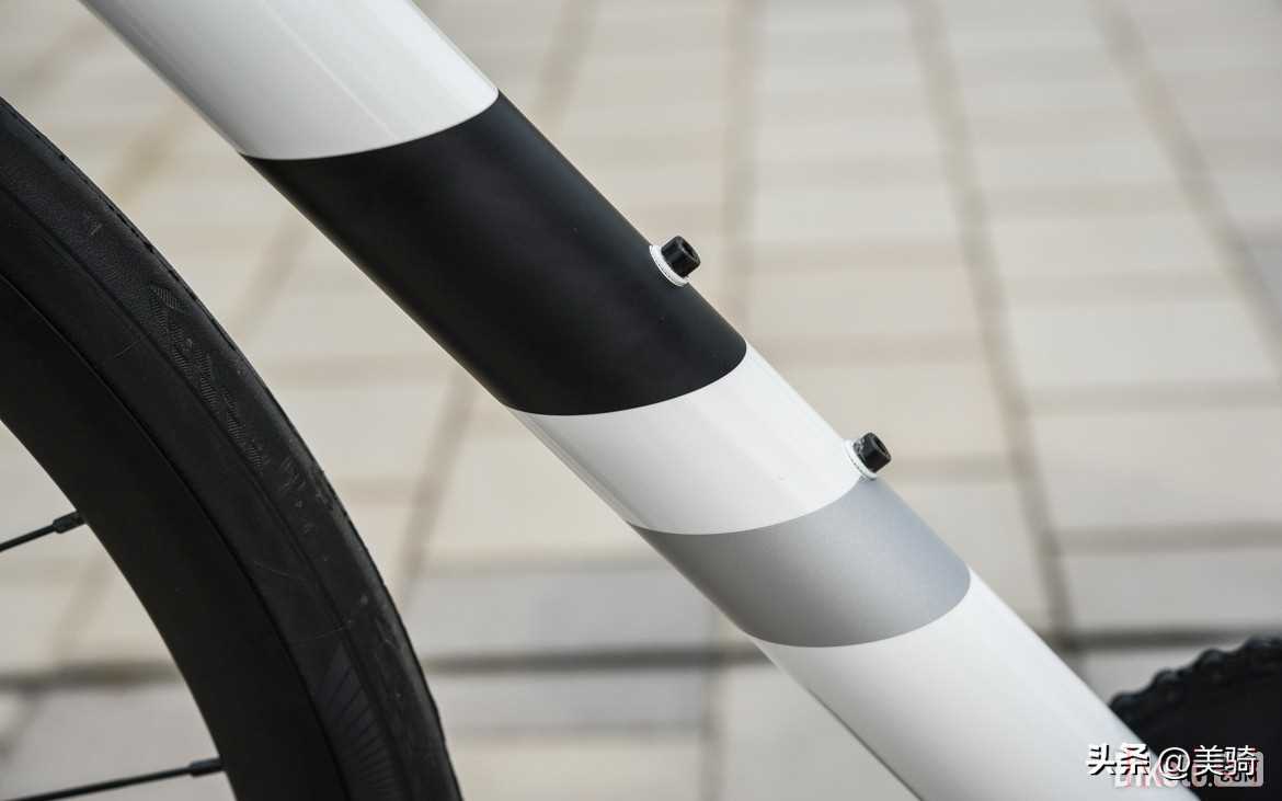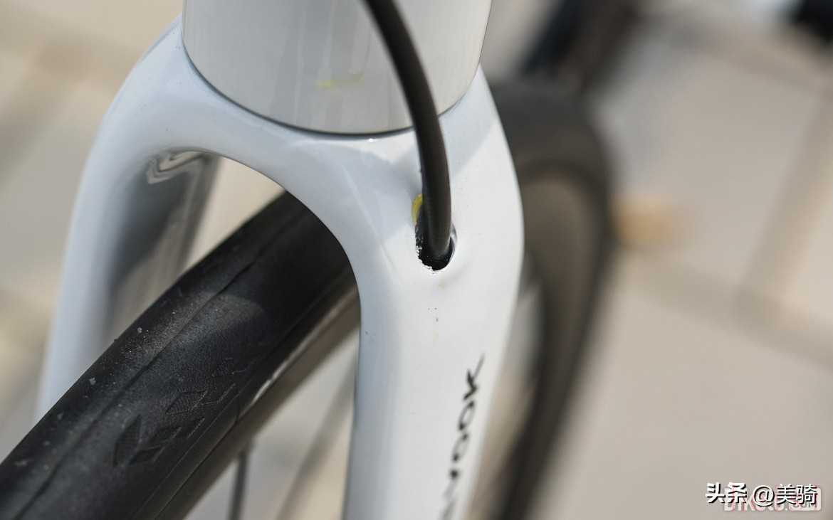 前叉上有與下管對應(yīng)的色塊涂裝,這是借鑒了Cannondale第三代SuperSix Evo的涂裝風(fēng)格。