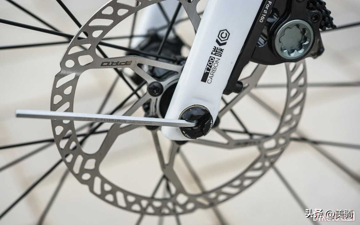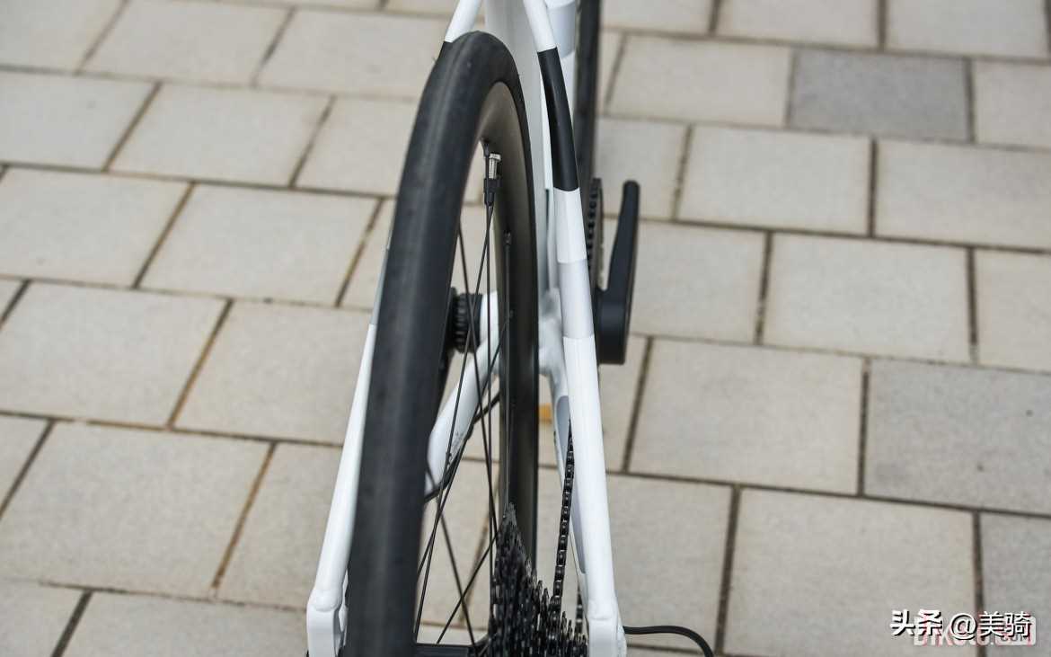 輪胎間隙方面,前叉的間隙非常充足,目測32mm的輪胎都“吃得下”;但后叉間隙就比較局促了,目測最多能支持30mm的輪胎。
