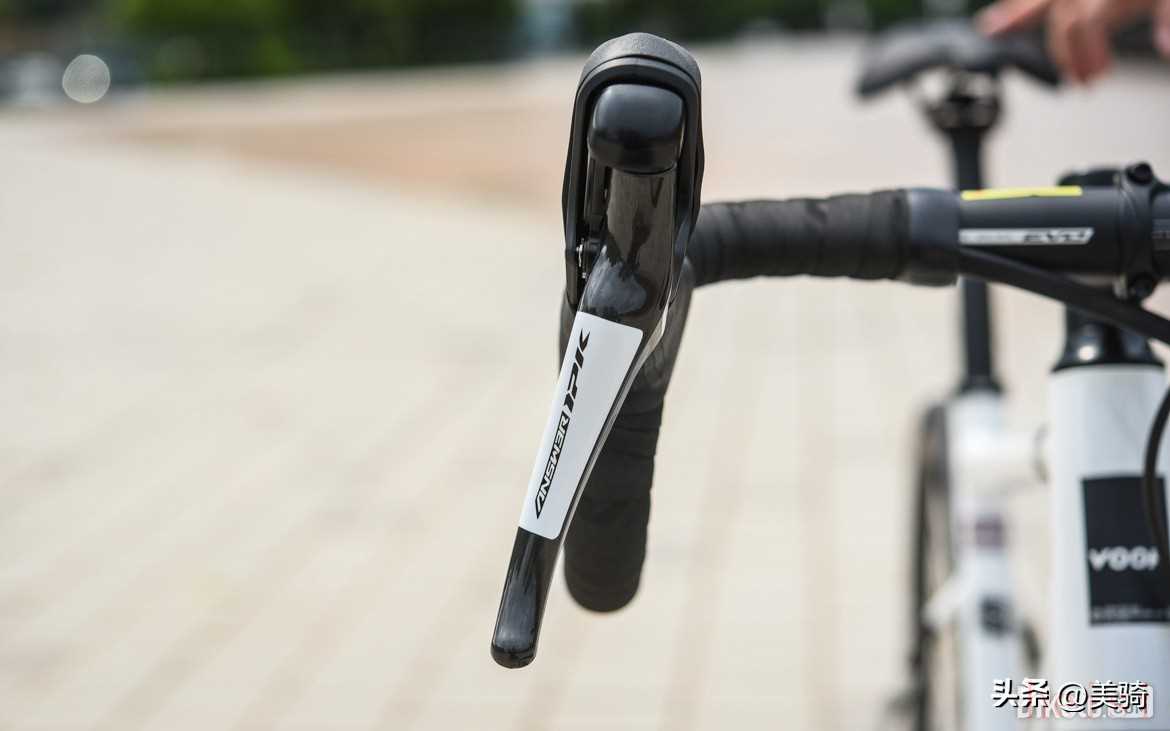 手變方面,看得出VOOK和順泰已經(jīng)在盡可能地優(yōu)化機(jī)械液壓手變頭的造型了,握感在同級里算是比較優(yōu)秀的,操控剎車也比較順手。但剎把間距不可調(diào),對小手的適應(yīng)性可能不太好。另外就是手變膠套的防滑紋路有點(diǎn)用力過猛,小編沒戴手套騎了一小時(shí),就把豌豆骨部位磨得發(fā)紅。剎車的表現(xiàn)也好于小編預(yù)期,充分磨合后剎車力和剎車響應(yīng)表現(xiàn)都不錯,完全夠用。這兩年入門碟剎公路車上最大的進(jìn)步就是,開始搭載自主品牌的液壓手變頭,一舉解決了入門碟剎公路車在剎車方面的痛點(diǎn)。